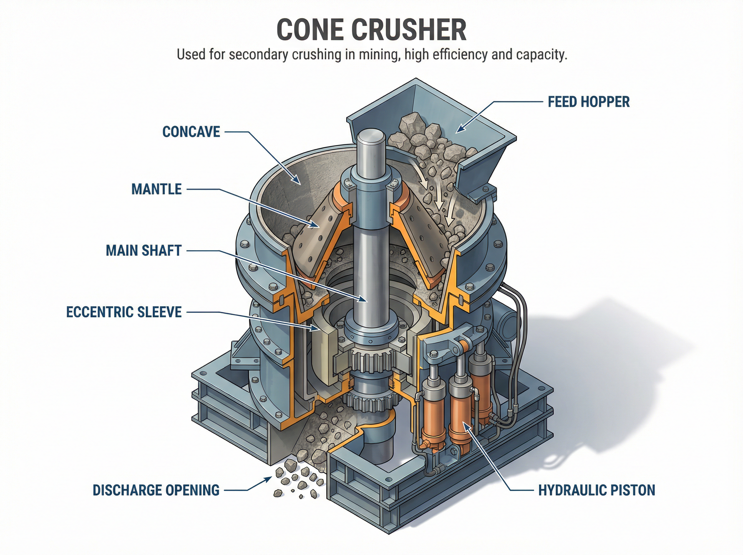 Based on real plant operation experience, cone crusher efficiency loss is rarely caused by a single failure. Instead, it is usually the result of operational and mechanical factors.